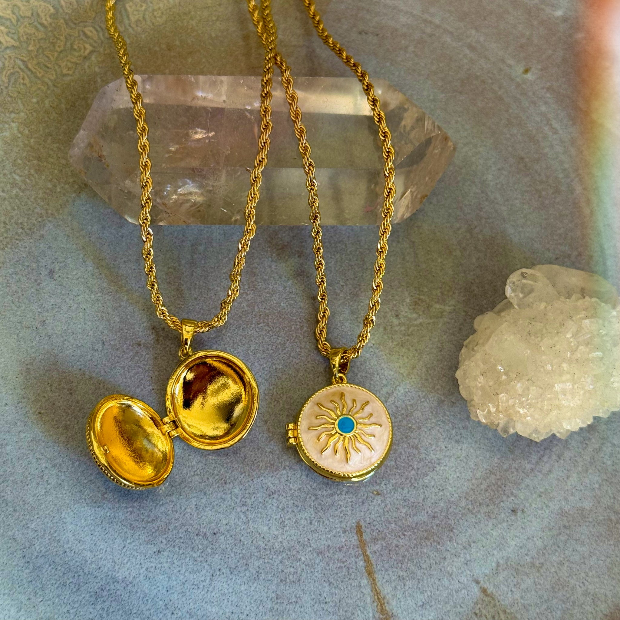 18" 24K gold filled chain with gold filled sun locket pendant