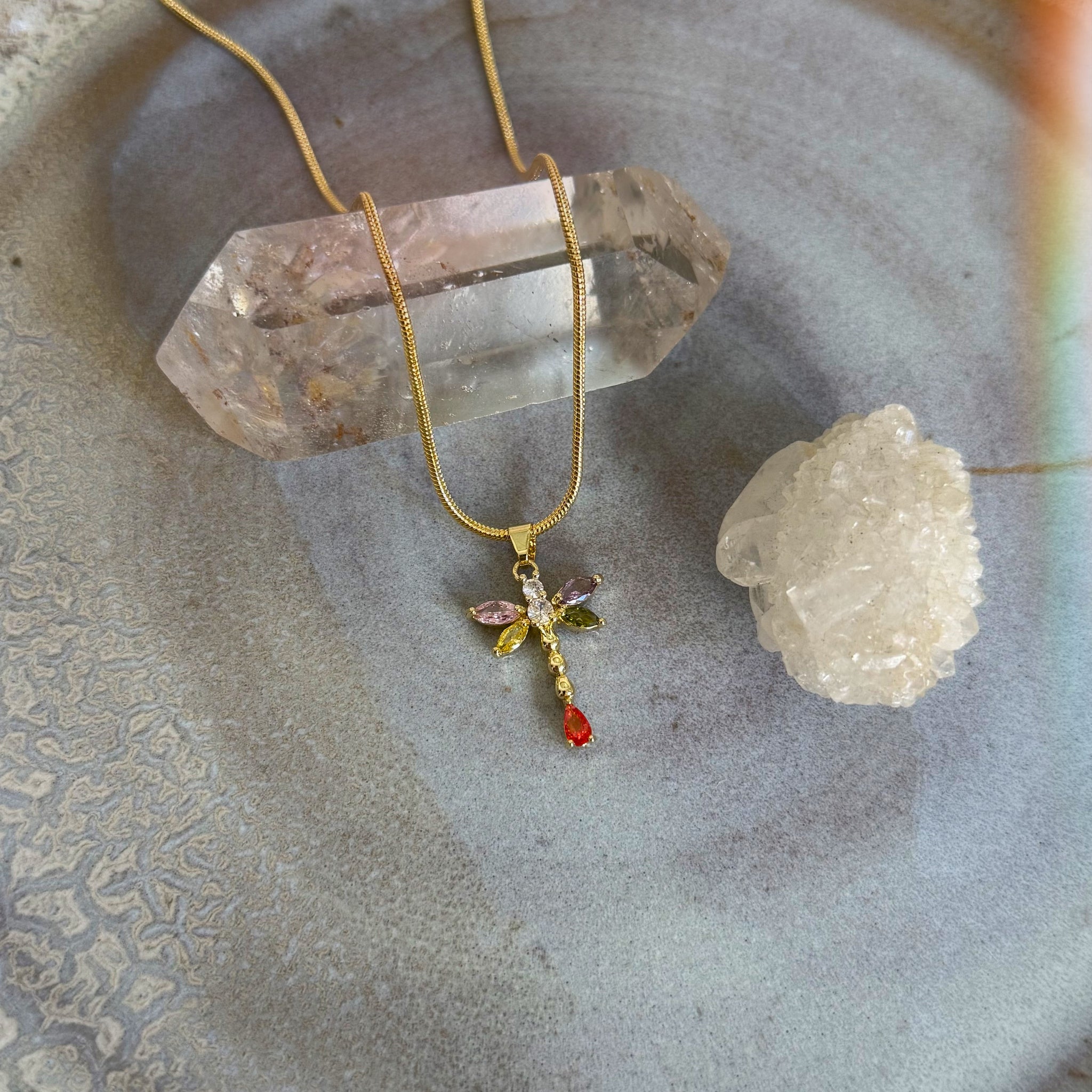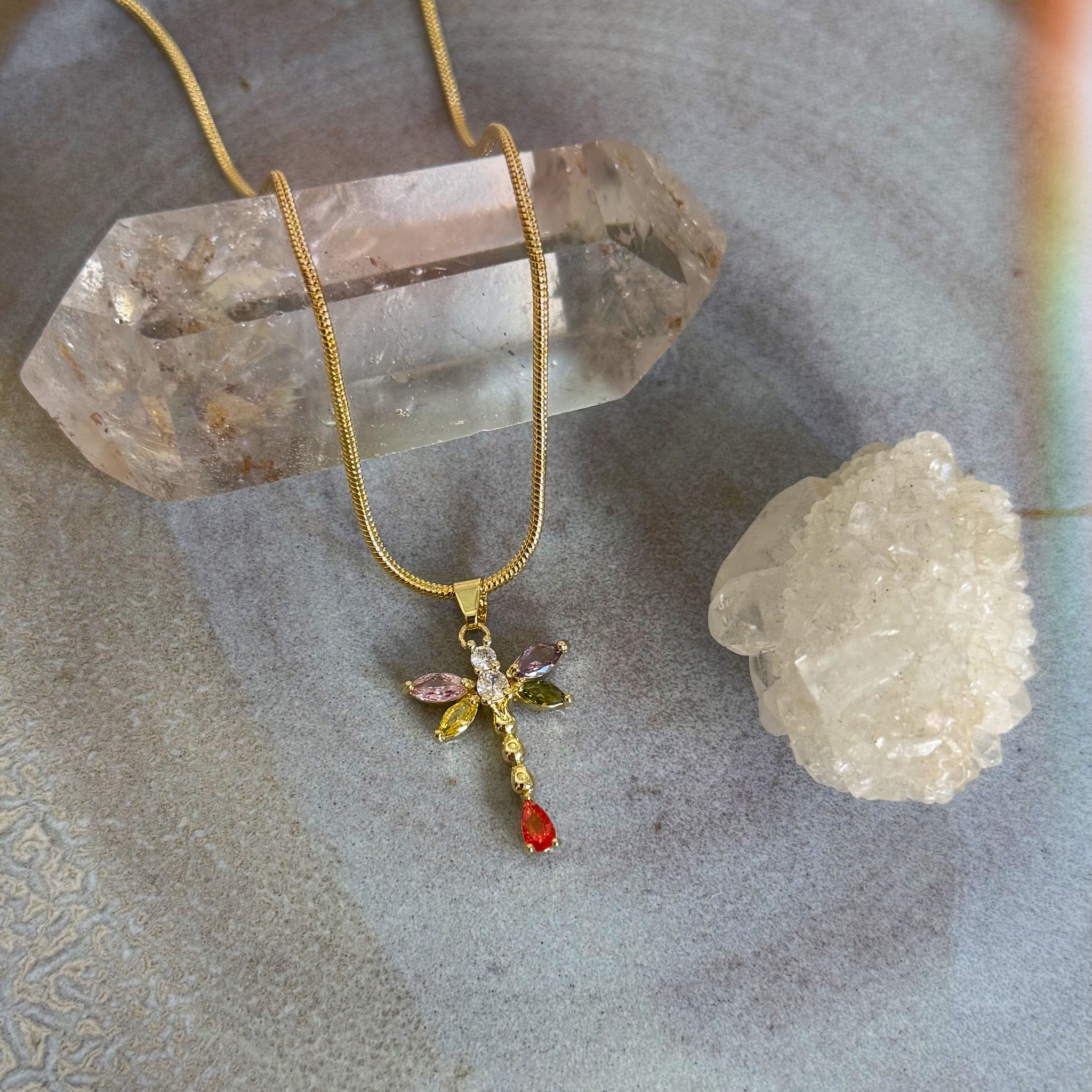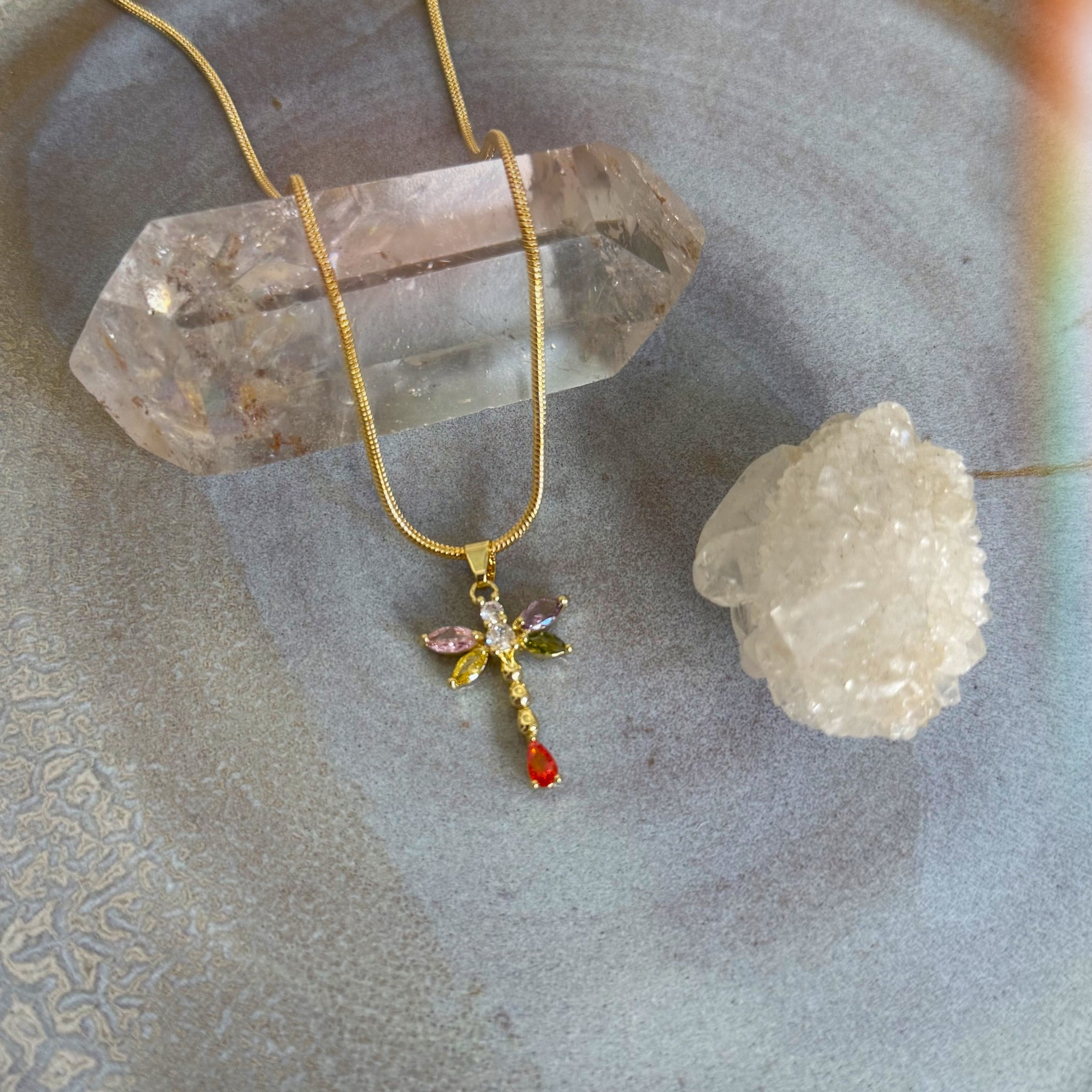 18" 14K gold filled chain with gold filled cubic zirconia dragonfly pendant