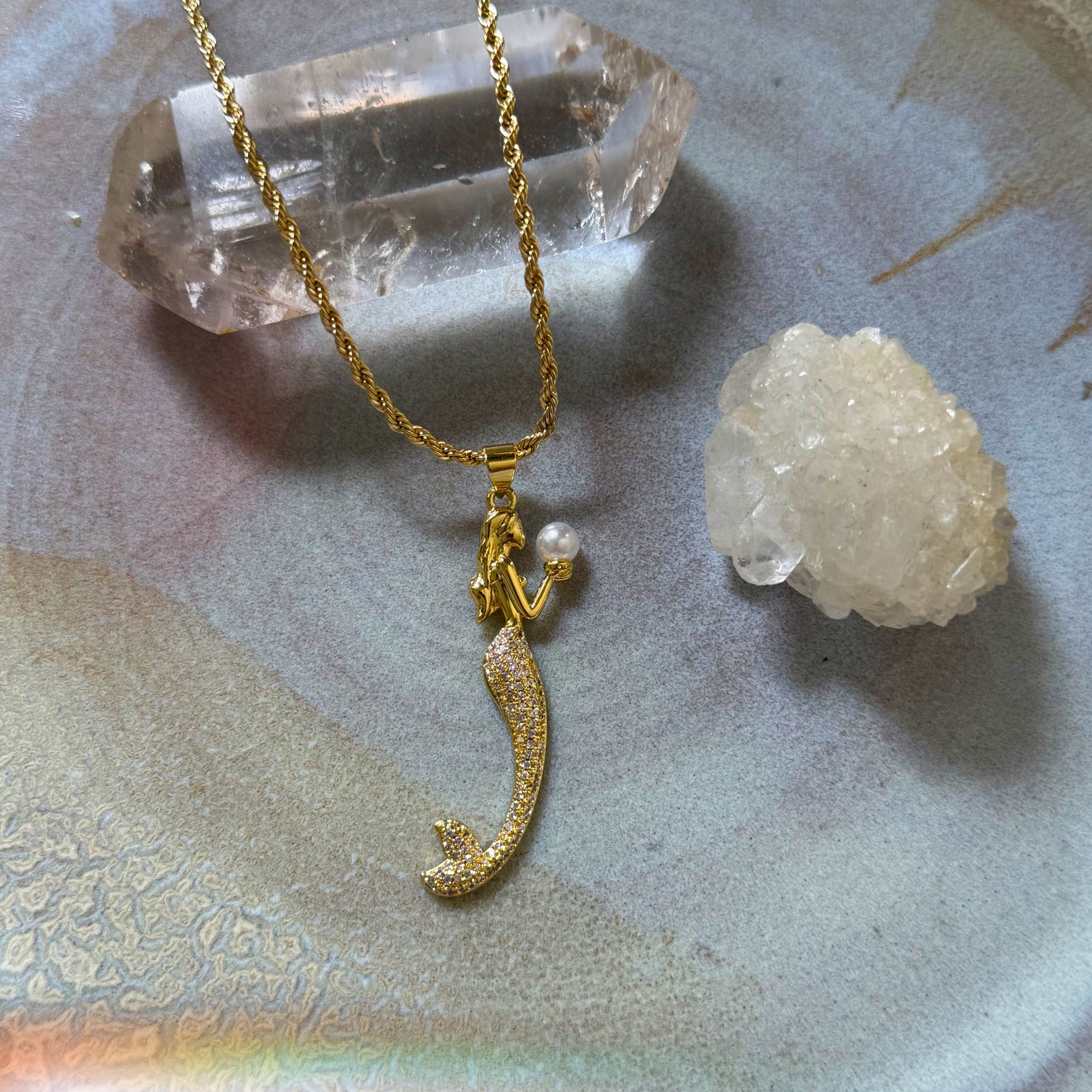 17.9" 24K gold filled chain with gold filled and pearl mermaid pendant